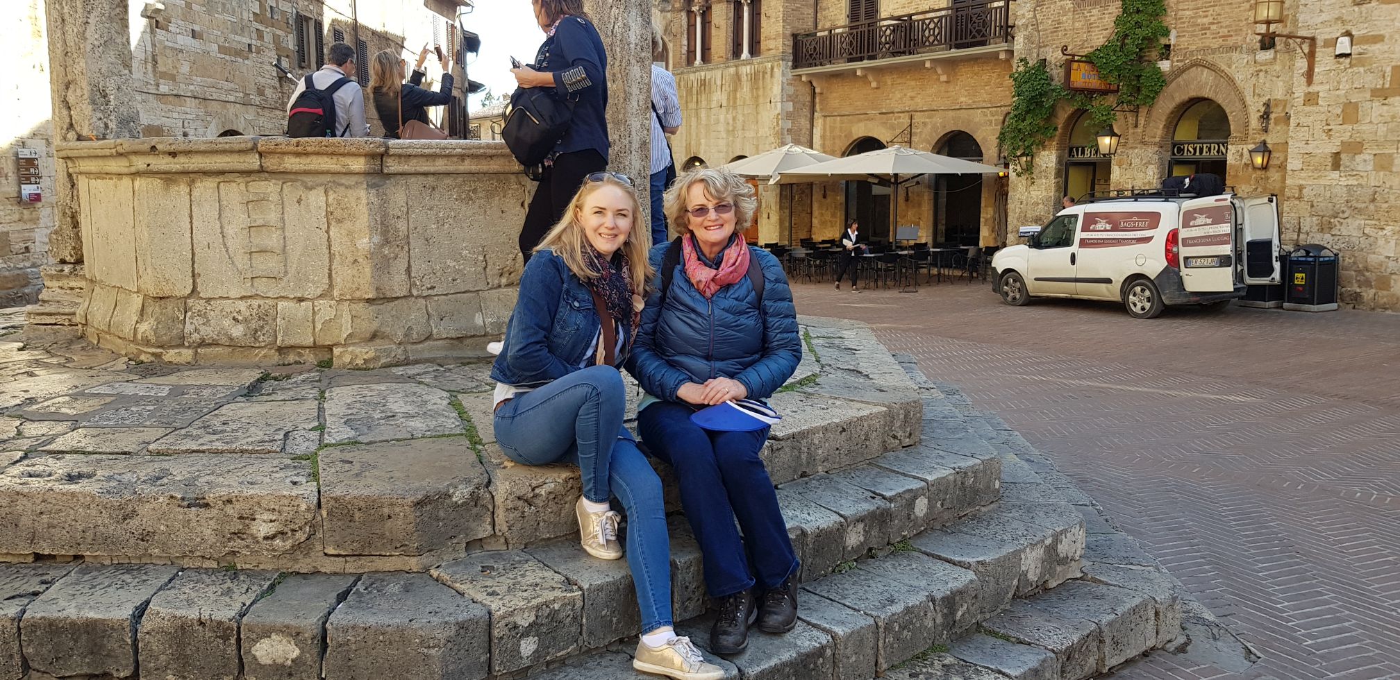 26 September 2018. Ons is in Italië, in Florence. Dis ʼn stad wat min slaap, in die gedeelte waar ons is, altans. As jy elke dag van jou lewe in ʼn gewone voorstedelike buurt woon, is enige geraas na tien uur saans, vreemd. So om verkeer en mense en stadsgeluide tot vroeg in die oggend te hoor, is nie iets waaraan ons gewoond is nie. Maar dis deel van die ervaring en ons geniet. Ons trek saans die luike toe en slaap heerlik. Ons besef as ons meer as Florence wil sien sal ons ʼn plan moet maak. Ons het nie ons eie kar nie, en wil ver ry, tot by Siena…. so hoe nou gemaak? Na baie wik en weeg besluit ons om ʼn dagtoer te bespreek.